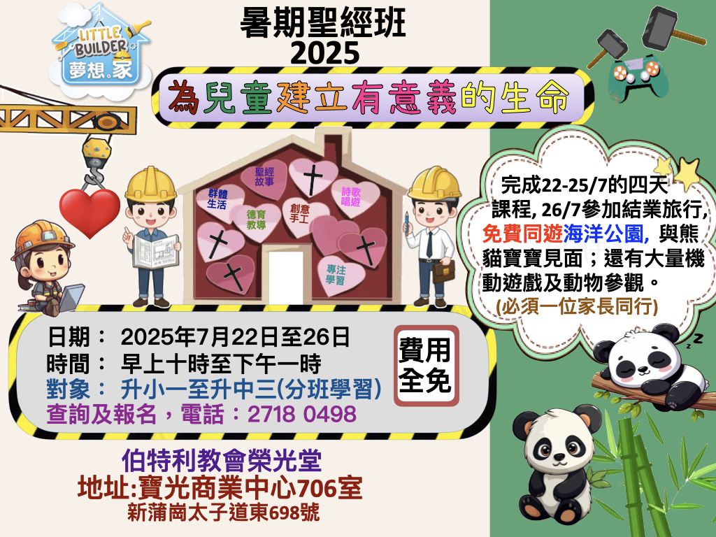 7月13日午堂崇拜後愛筵及大合團活動,仍未報名弟兄姊妹,早堂可以聯絡袁慧珠及馮寶儀姊妹;午堂可向鄭遠維執事或黃富臨弟兄報名,收費每位30元,3歲或以下幼兒免費。
